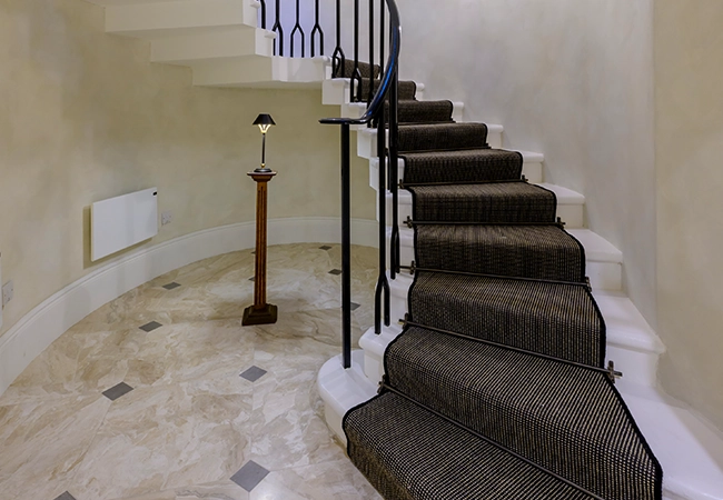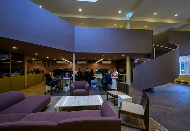 Introduction of a new mezzanine linked via an intricate steel spiral staircase, new services carefully designed around beautiful period features, stunning finishes including stone and marble floors, all complemented by elegant and sophisticated joinery.